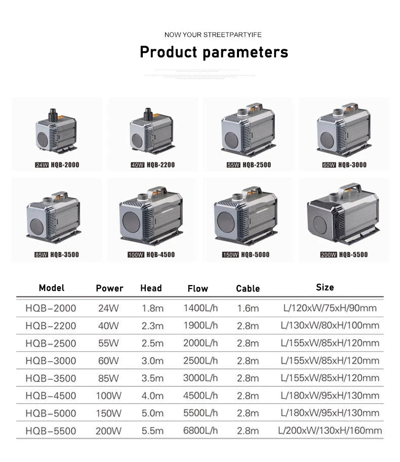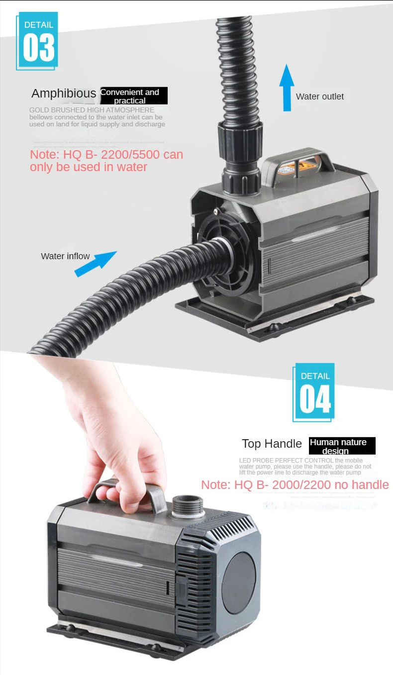 Scope of application: Aquarium fish tanks, garden fountains, flowing water crafts, water-cooled air-conditioning fans, mechanical equipment and other fields.