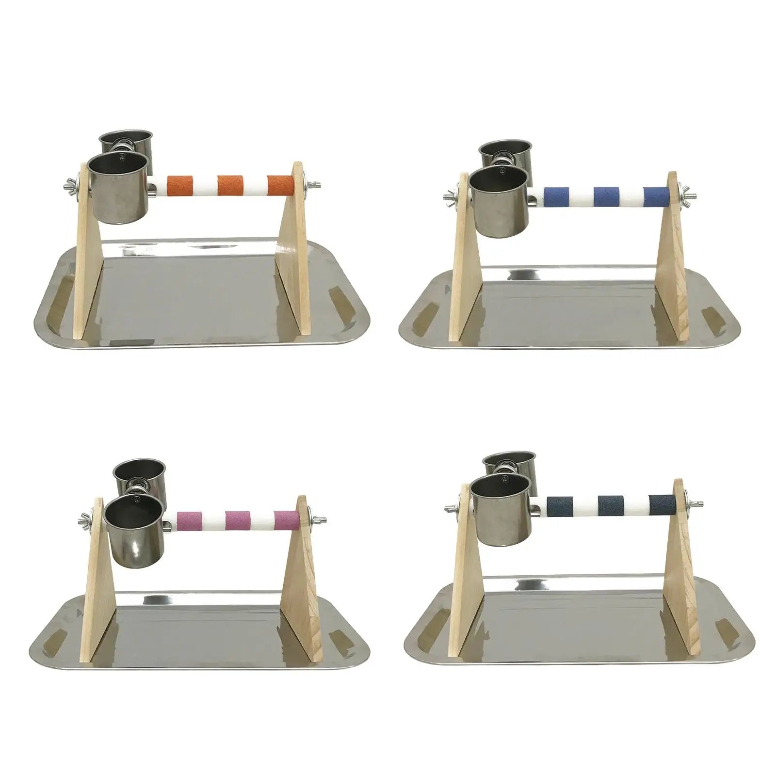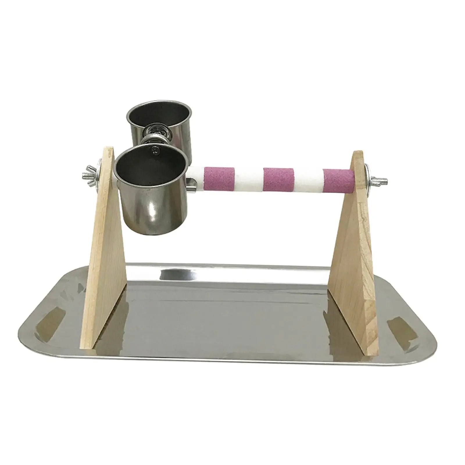 Bird Parrot Playstand Stainless Steel Bowl Birdcage Accessories Desktop Toys for Budgie Macaw Parakeets Finches Cockatiels