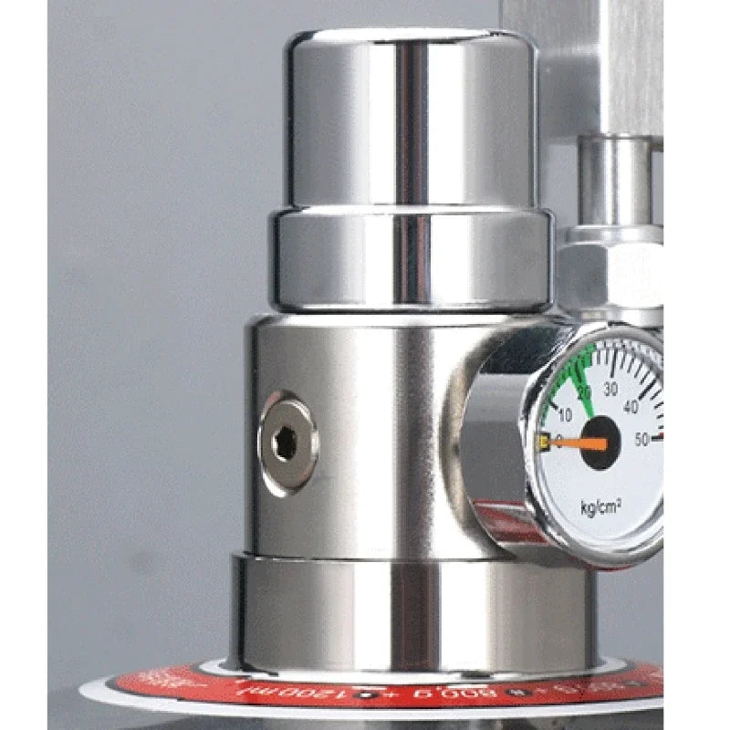 * High pressure gauge: 0-100kg/cm², showing the pressure value of carbon dioxide in the bottle.