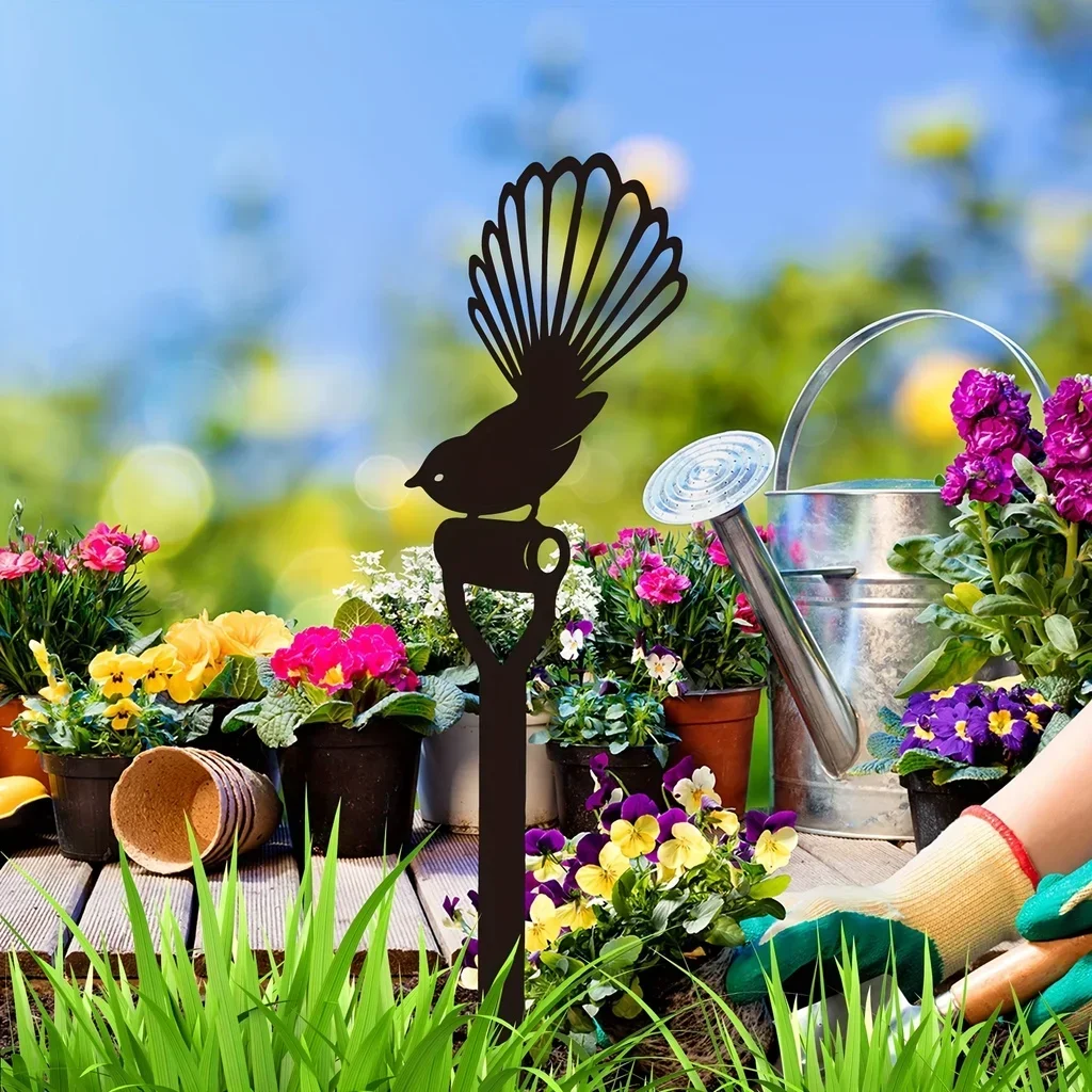 HELLOYOUNG Rustic Garden Decoration Bird on A Spade Metal Statue Outdoor Patio Decoration Yard Metal Sign Garden Party Decor Gif