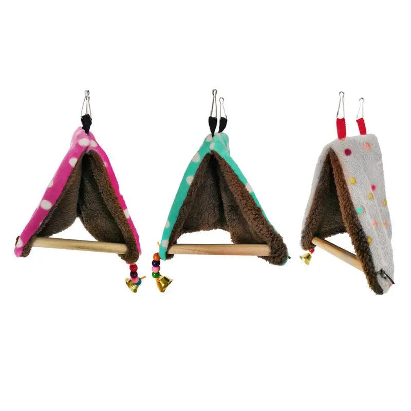 Your bird will snuggle this soft fleece tent with perch to keep warm in winter