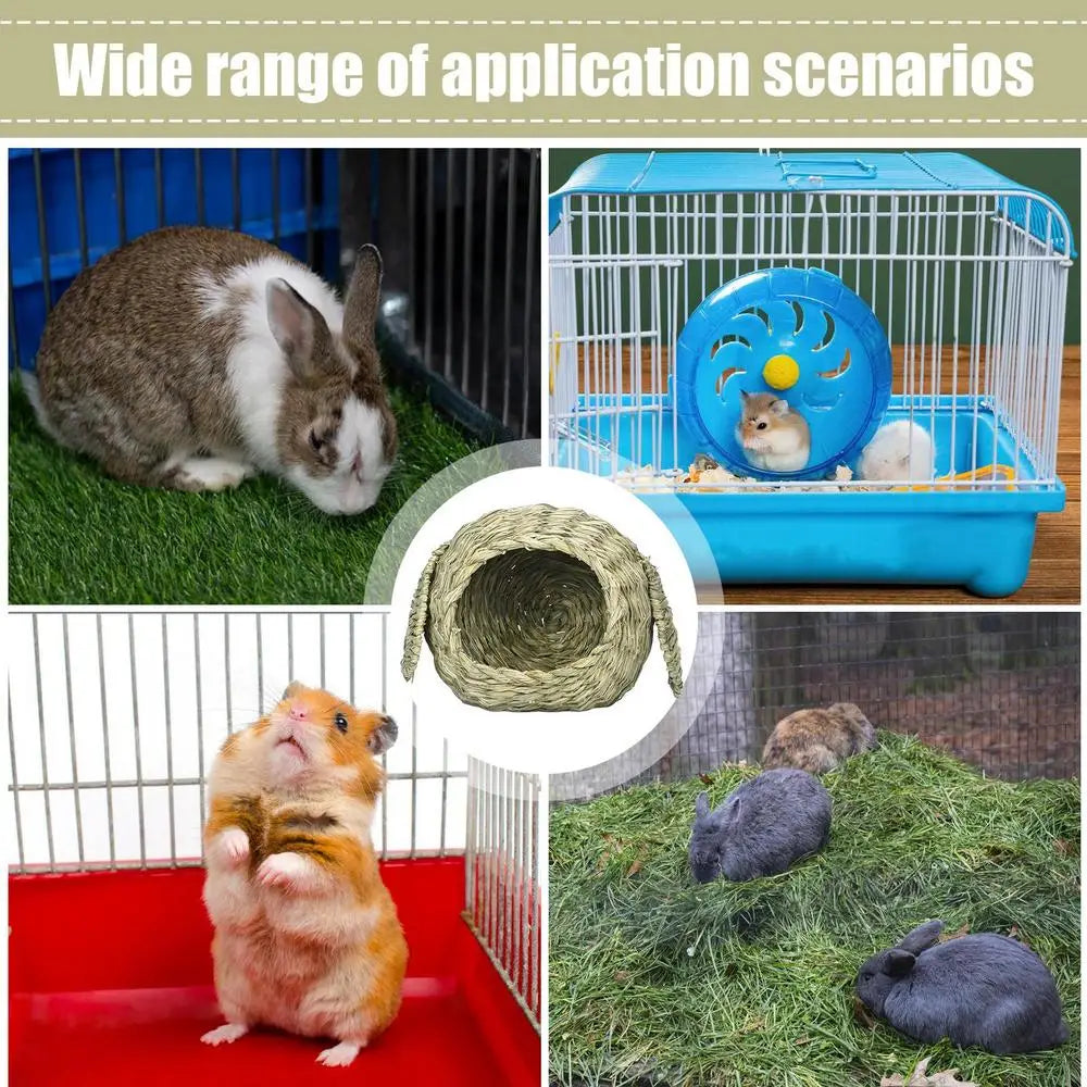 Rabbit Grass House Woven Animal Hut Bunny House Play Hideaway Hay Mat Bed Chew Toy For Rabbit Guinea Pigs Gerbils Hamster